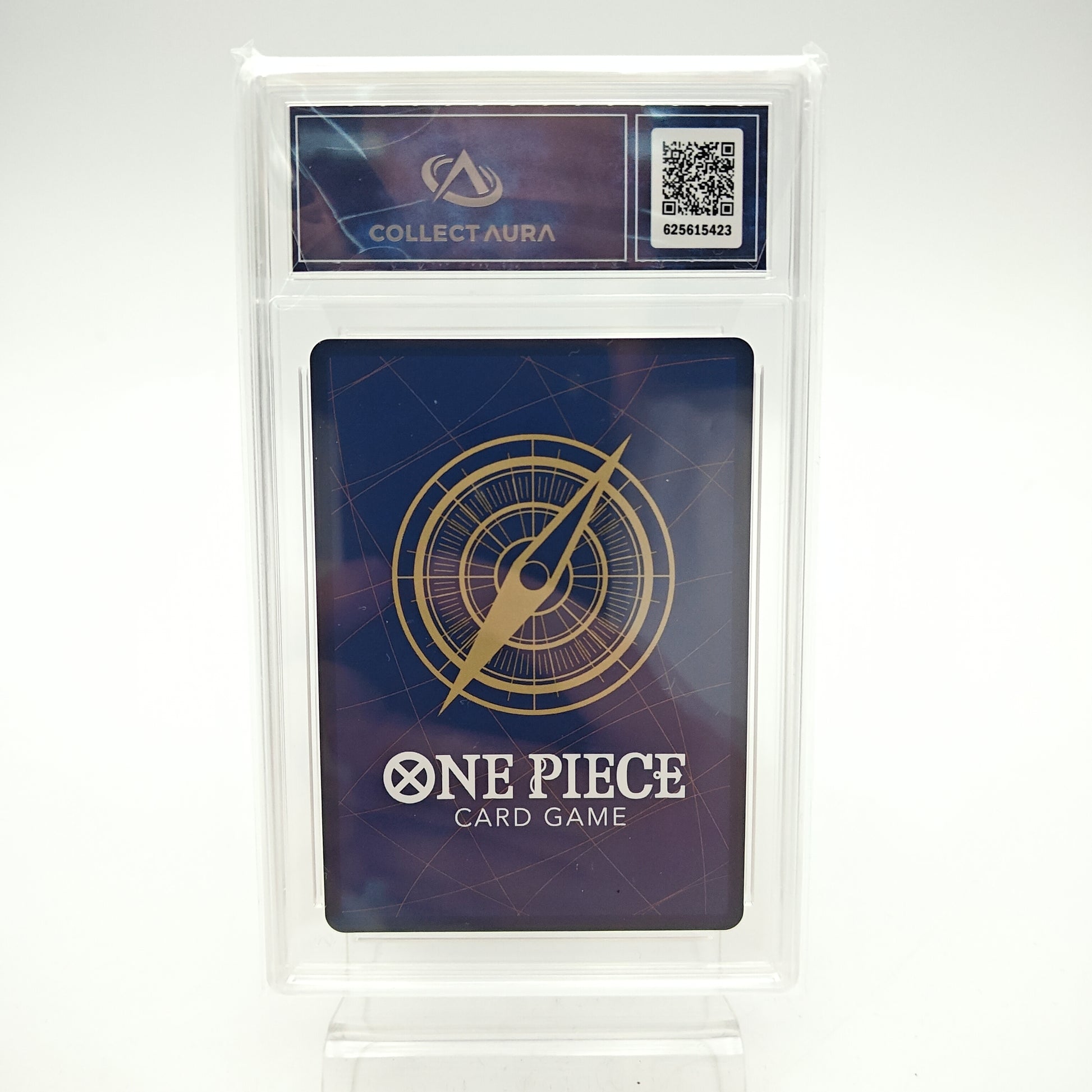 Carte One Piece gradée par la société de gradation CollectAura. Certifiée authentique et protégée dans un boitier en plastique scellé